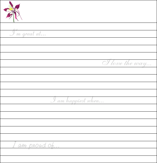 Use this Positive Thoughts journal to write down one positive comment about yourself each day. Whenever you’re having a bad day or feeling down about yourself, read this journal for inspiration and to remind yourself of all of your wonderful qualities.